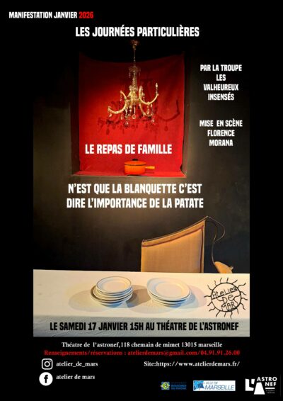 Les Journées Particulières sont organisées par l’Atelier de Mars. Elles visent à mettre en lumière les talents des comédiens et comédiennes en situation de handicap, en leur offrant une plateforme pour s’exprimer dans le domaine théâtral. L’objectif de l’association est de promouvoir la diversité des formes d’expression et de participation à la vie culturelle, en mettant en place des dispositifs de soutien, de création et d’intervention artistique adaptés.