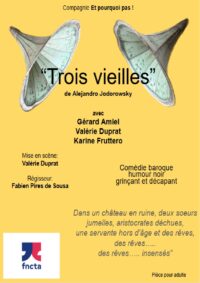 Trois vieilles est une comédie noire à l’humour grinçant, portée par des personnages outranciers et une mise en scène volontairement décalée. Le rire y côtoie la cruauté, révélant avec satire les contradictions et les zones d’ombre de la nature humaine. Entre situations cocasses et tensions sous-jacentes, le spectacle entraîne le public dans un univers aussi drôle qu’inquiétant.